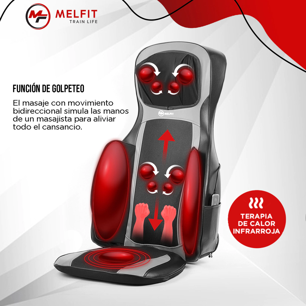 Está diseñado con múltiples funciones para cualquier asiento de automóvil, silla de oficina o sofá. Tiene una funcion especial para contracturas cervicales que masajean el cuello. Mejora la circulación sanguínea, elimina el dolor de espalda, alivia la fatiga y aligera la presión.